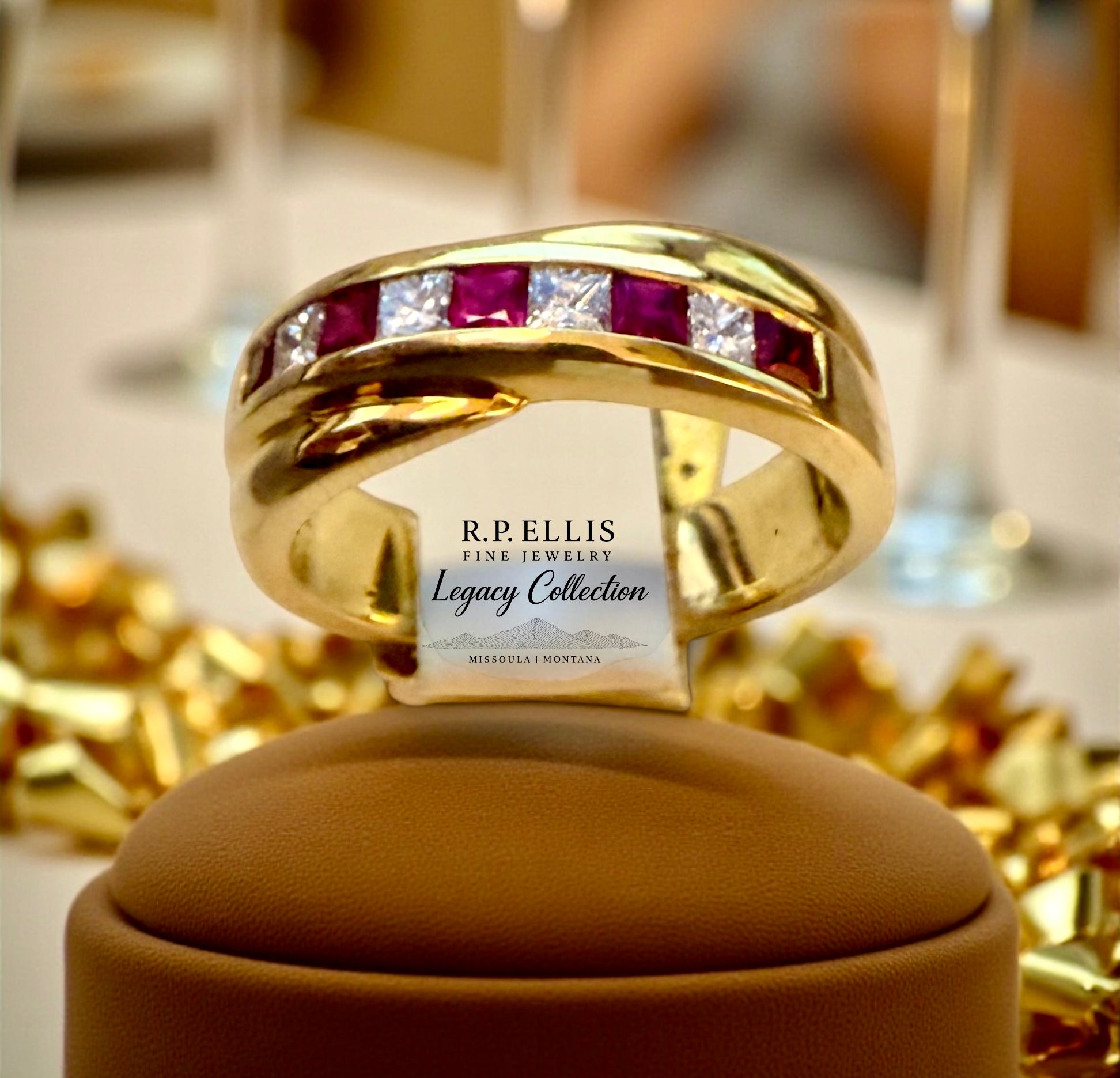 - Stones: Princess-cut Rubies & Diamonds